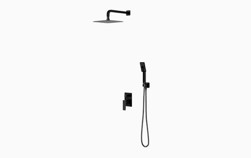 Zestaw marki Omnires z kolekcji Parma to idealne rozwiązanie do nowoczesnej łazienki. Jej wykończenie w kolorze czarny mat oraz kwadratowy, wyrazisty kształt nadają wnętrzu niepowtarzalnego charakteru. Idealnie komponuje się z białymi płytkami imitującymi marmur.