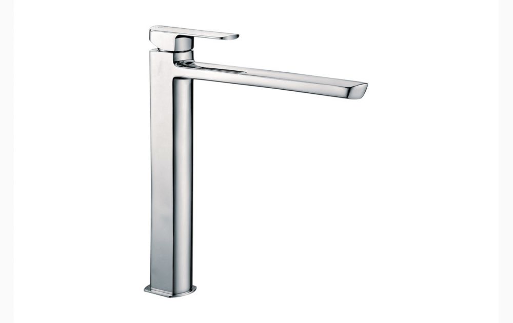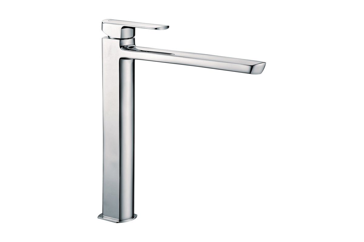 Wysoka bateria umywalkowa z kolekcji Pride łączy ze sobą proste