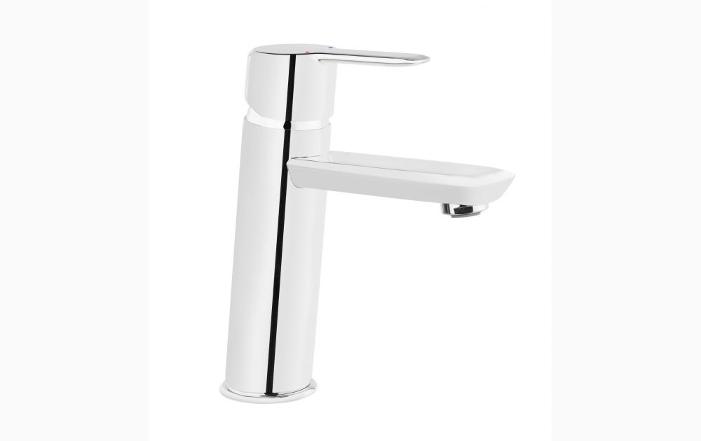 Bateria umywalkowa z kolekcji Arnika łączy prostotę z delikatnymi owalnymi kształtami. Zgrabny korpus baterii