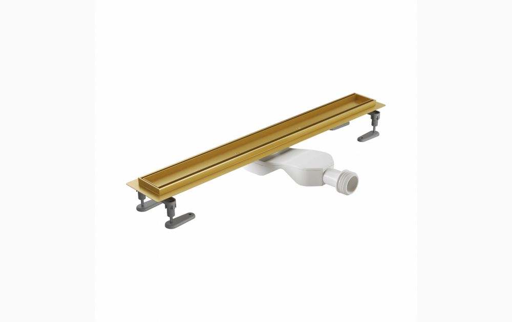 Odpływ liniowy Stilio łączy w sobie funkcjonalność i minimalizm. Zastosowanie odpływu liniowego pod prysznicem daje możliwość bez barierowego przejścia z obszaru mokrego do suchego. Wykonany został z wysokiej jakości stali nierdzewnej pokrytej powłoką PVD w kolorze złotym i posiada wygodną regulację nóżek od góry. Odpływ dopasowany jest do płytek o grubości 8-12 mm. W skład zestawu wchodzą: mankiet uszczelniający, ruszt, rynna, nóżki, syfon, redukcja 40/50 mm. Odpływ Stilio Gold występuje w rozmiarach 60, 70, 80 i 90 cm