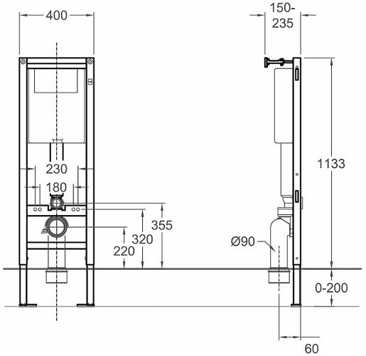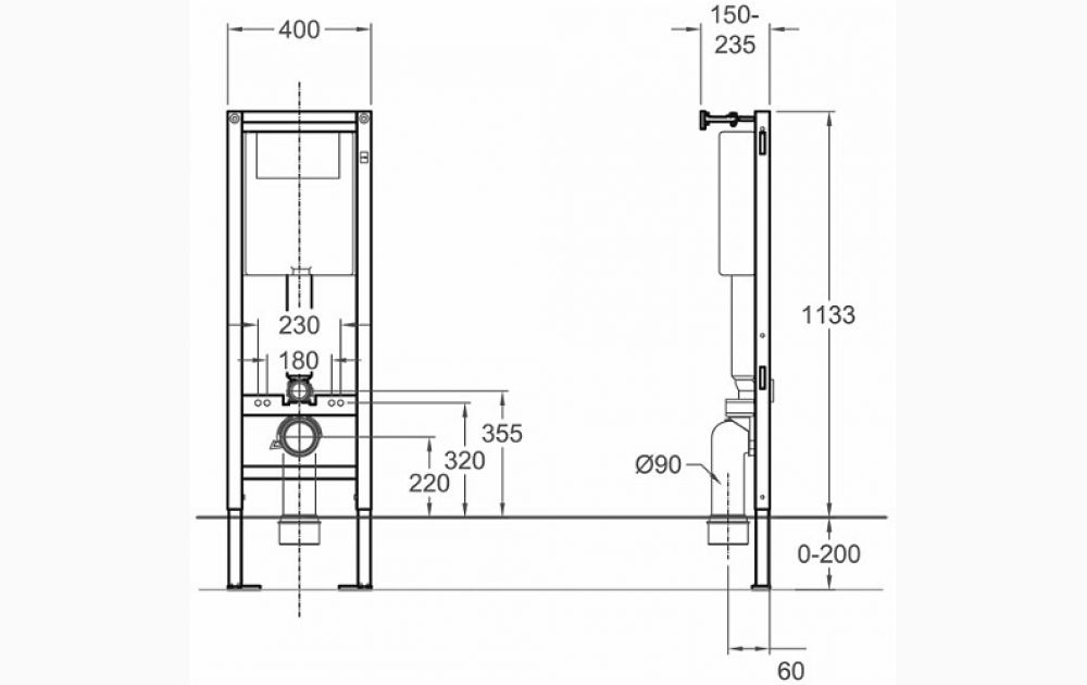 Stelaż podtynkowy do zabudowy lekkiej o szerokości 40 cm, wysokości 113-133 cm i głębokość: 15-23,5 cm. Możliwy montaż w narożniku. Do kompletowania z miskami wiszącymi i przyciskiem do stelaża Technic GT. Stelaż może być wyposażony w system Smart Fresh.