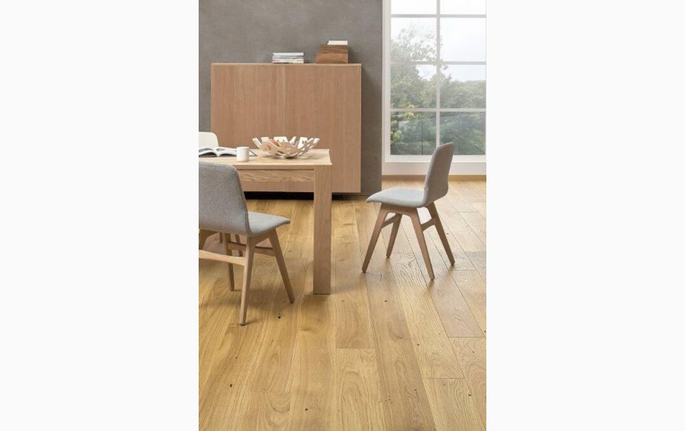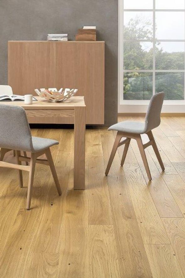 co potęguje wrażenie szlachetnej, tradycyjnej podłogi dębowej. Jako wykończenie zastosowano lakier matowy.