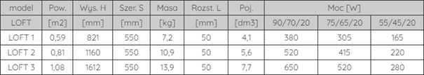 Grzejnik dekoracyjny Loft otrzymał prostą, minimalistyczną, nienarzucającą się formę, dzięki czemu wpisuje się idealnie we wnętrze w każdym stylu. Grzejnik można zamówić z podłączeniem dolnym na kolektorach pionowych lub z zasilaniem dolnym V 50mm. Model występuje w wersji z zasilaniem wodnym, elektrycznym lub wodno-elektrycznym. Dostępny w szerokiej gamie kolorystycznej z palety barw RAL oraz palety Radeco.