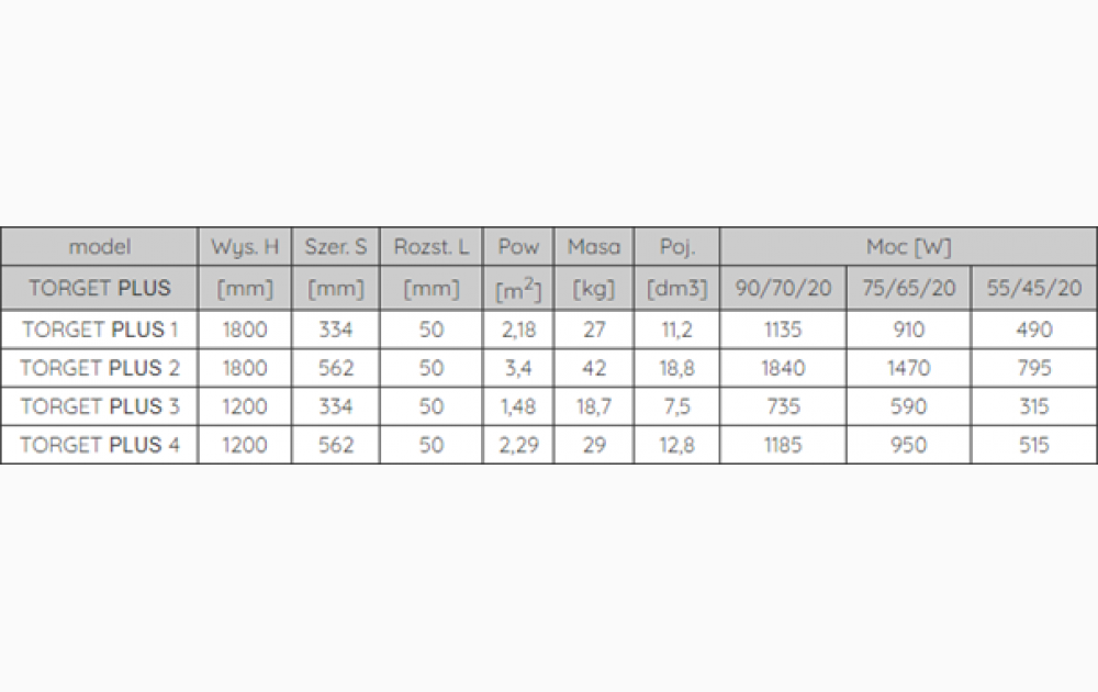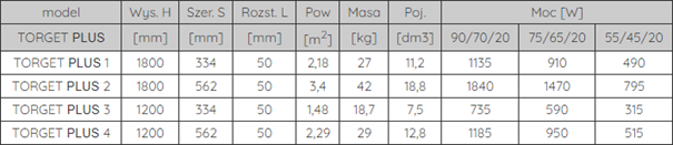Grzejnik Torget zbudowany jest z profili pionowych o płaskim przekroju. Cechy charakterystyczne dla tego modelu to minimalizm i funkcjonalność. Dostępny w szerokiej gamie kolorystycznej z palety barw RAL oraz palety Radeco. Grzejnik można zamówić z podłączeniem dolnym (na kolektorach pionowych lub z zasilaniem V 50mm), bocznym lub krzyżowym. Grzejnik Enzo występuje w wersji z zasilaniem wodnym, elektrycznym lub wodno-elektrycznym. Produkt można uzupełnić o funkcjonalne relingi oraz wieszaki.