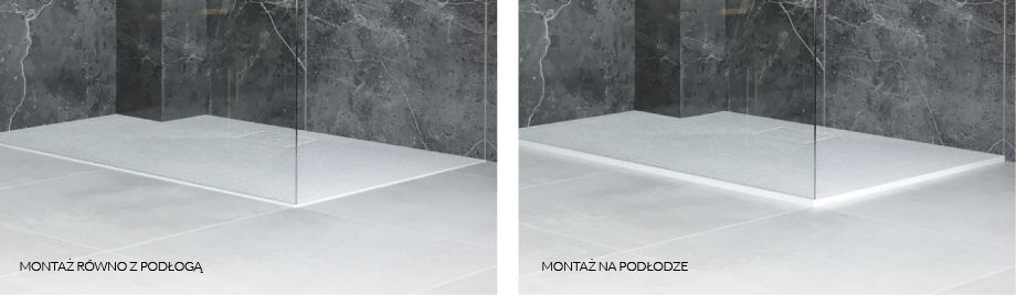 Brodziki kompozytowe Lavano to najniższy brodziki w ofercie, możliwość zlicowania z pozostałymi płytkami w łazience bez konieczności wykonania dodatkowego obniżenia poziomu wylewki. Jeśli istnieje potrzeba, aby brodzik był montowany bezpośrednio na posadzce, to jest to również możliwe.