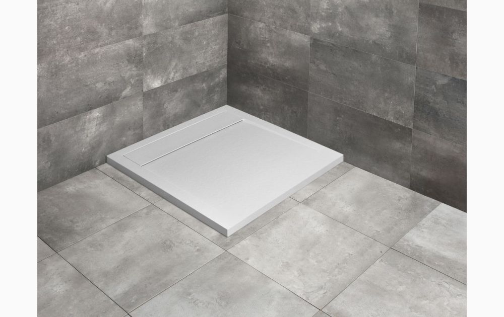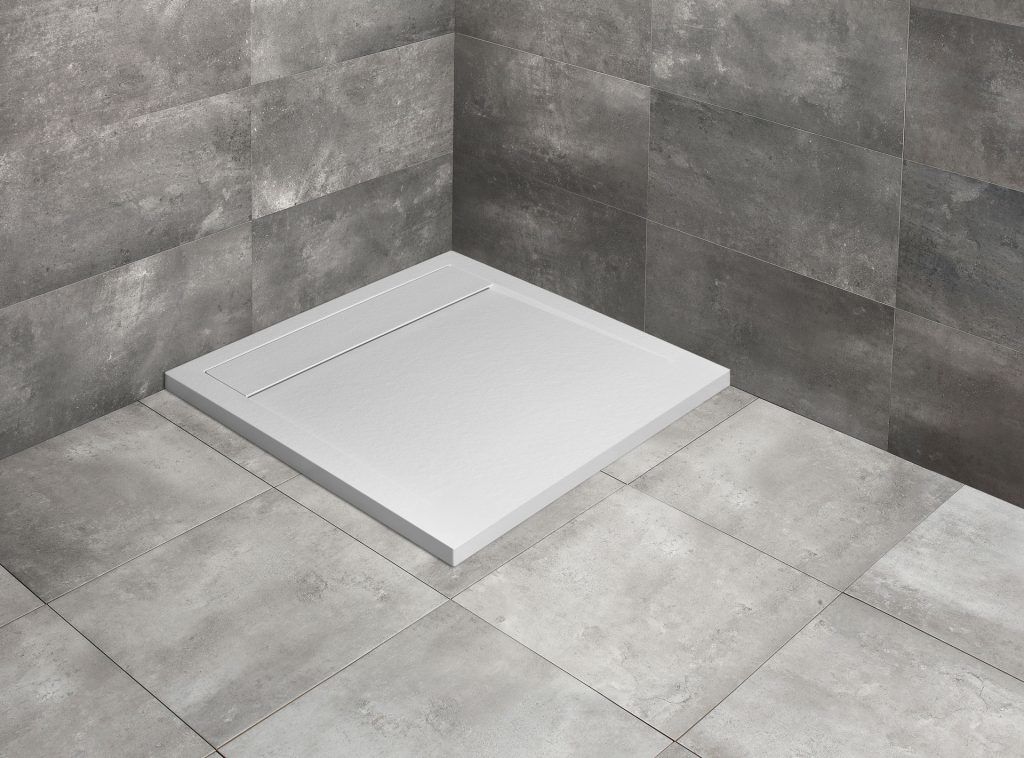 Brodzik Teos C wykonany jest z marmurowego konglomeratu. Konstrukcja brodzika pozwala na zlicowanie go z powierzchnią płytek. Wszystkie brodziki konglomeratowe mają wysoką wytrzymałość na nacisk. Powierzchnia brodzika posiada właściwości antypoślizgowe. Brodzik występuje w kolorze białym, czarnym i antracytowym. Dużą zaletą jest możliwość przycięcia do indywidualnych rozmiarów. Wysokość brodzika to 40 mm, średnica odpływu Ø 90 mm