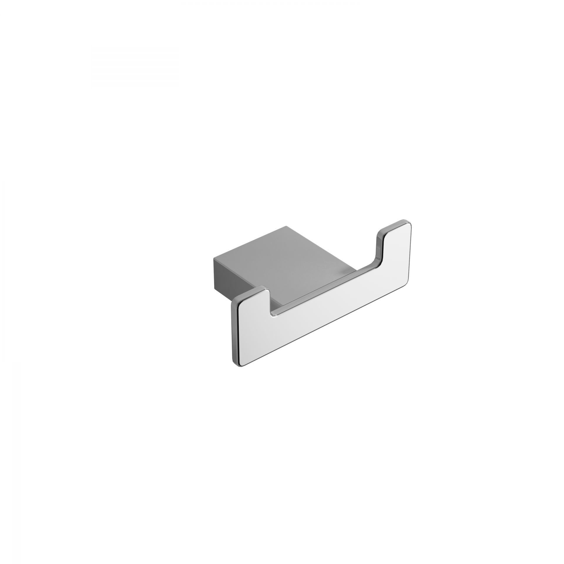 Haczyk podwójny Riko został wykonany z mosiądzu pokrytego chromem. Elementy mocujące są ukryte, co pozwala na eleganckie zamontowanie haczyka na ścianie. Kształt produktów z serii Riko idealnie nadaje się do wnętrz w stylu nowoczesnym oraz minimalistycznym.