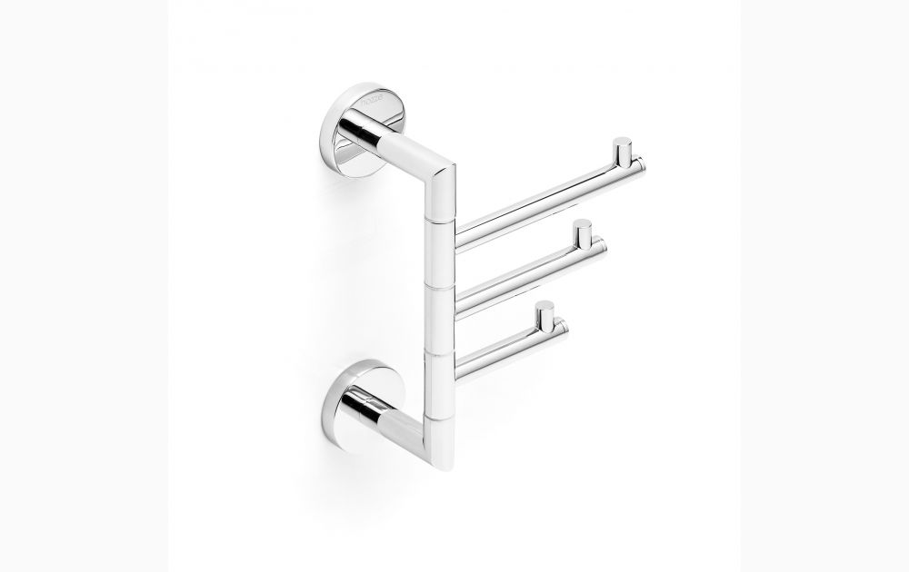 Wieszak potrójny, ruchomy z linii Model posiada opływowe kształty, które dzięki swojej delikatności oraz uniwersalności można zastosować we wszystkich wnętrzach. Wykonany został z mosiądzu i wykończony w chromie. Ukryty zestaw montażowy jest odporny na korozję. Produkt posiada pięcioletnią gwarancję.