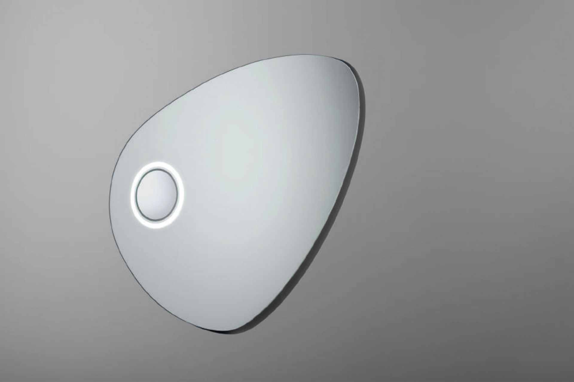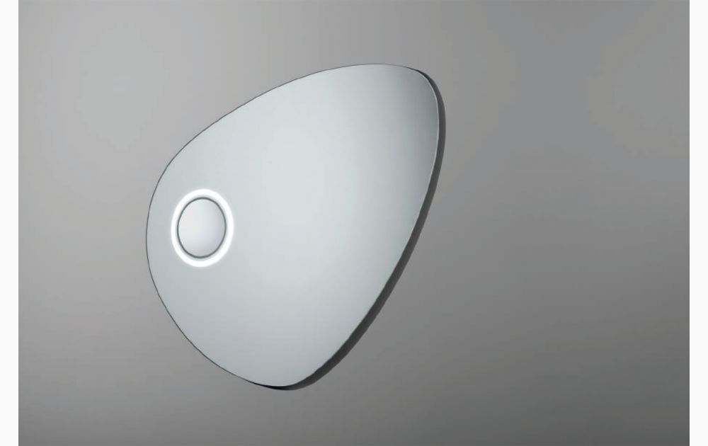 Lustro Florentina RUKE, Ten model lustra o oryginalnej formie, będzie niebanalnym elementem dekoracyjnym wnętrza. Lustro posiada wbudowany elemement powiększający podświetlony listwą led, który obok fukncji praktycznej pełni też rolę ozdobną podkreślając wyjątkowy kształt lustra. Istnieje możliwość wbudowania w taflę lustra zegara led. Wymiary lustra: 80x66cm.