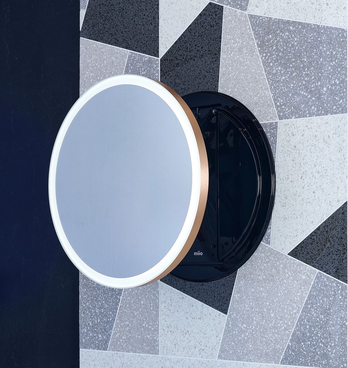 Lustro Sun Miior to nowoczesne, praktyczne lustro wysuwne z oświetleniem led, które ułatwi codzienną pielęgnację czy wykonanie perfekcyjnego makijażu. Dodatkowym jego atutem jest modny okragły kształt. Lustro ma średnicę 50cm i tylko 3cm grubości po złożeniu. Maksymalne wysunięcie do 28cm od powierzchni ściany. Lustra dostępne w kolorze białym i miedzianym. Istnieje możliwość wyboru barwy światła (ciepłe, neutralne).