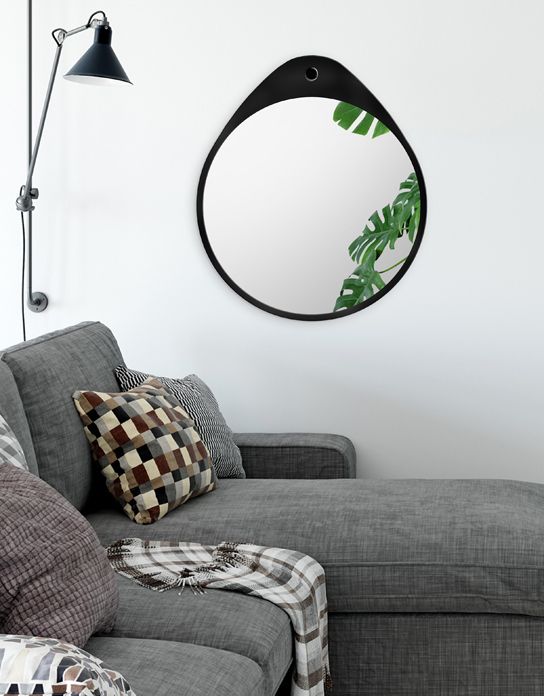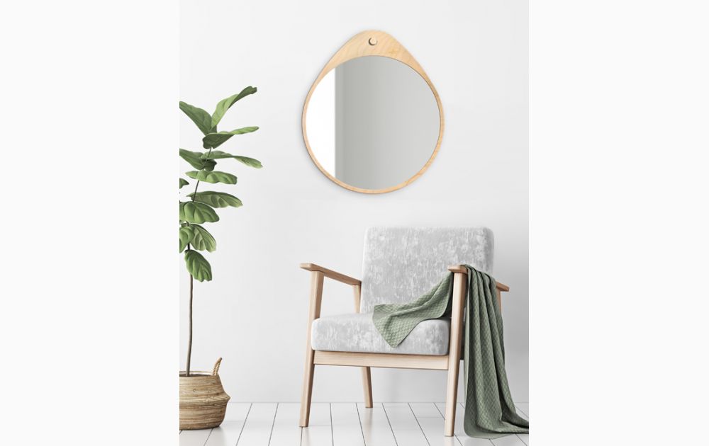 Lustro OSLO Ruke. Oryginalne lustro pasujące do wnętrz w popularnym stylu skandynawskim. Dodatkowym elementem dekoracyjnym jest dołączony do lustra kołek w kolorze ramy. Lustro dostępne w 3 wariantach kolorystycznych ramy: czarnym, białym (płyta MDF) i drewniana (sklejka liściasta). Dostępne wymiary 35, 45, 55, 65, 75, 85 cm. Lustro wykonywane na zamówienie.