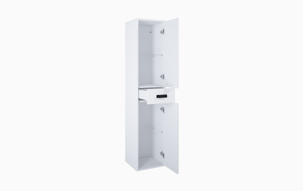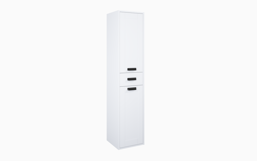 Kolekcja Inge cechuje się swoim wyjątkowym stylem- idealnie pasuje ona do wnętrz w stylu prowansalskim, a dzięki możliwości wyboru koloru uchwytów sami decydujemy o tym, czy słuepk ma się odznaczać (przy wyborze uchwytów w kolorze czarny mat), czy też ma się ona wkomponować i tworzyć spójną całość z wnętrzem (uchwyty w kolorze chrom). Słupek Inge posiada szufladę oraz 4 szklane półki, których uniwersalne drzwiczki posiadają funkcję cichego samodomyku. Front oraz korpus wykonane są z płyty MDF pokrytej folią PCV. Posiada ona 24 miesięczną gwarancje. Szafka nie posiada uchwytów w komplecie, produkt do dokupienia oddzielnie.