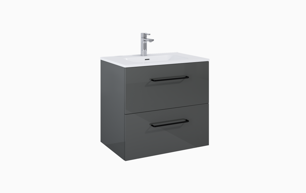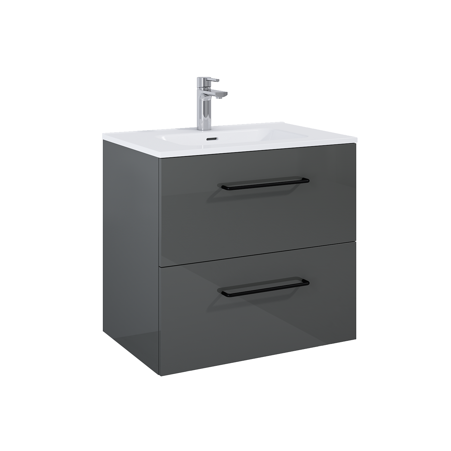 Komoda Look w kolorze antracytowym posiada dwie szuflady z funkcją cichego samodomyku oraz