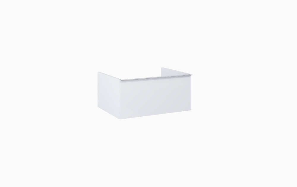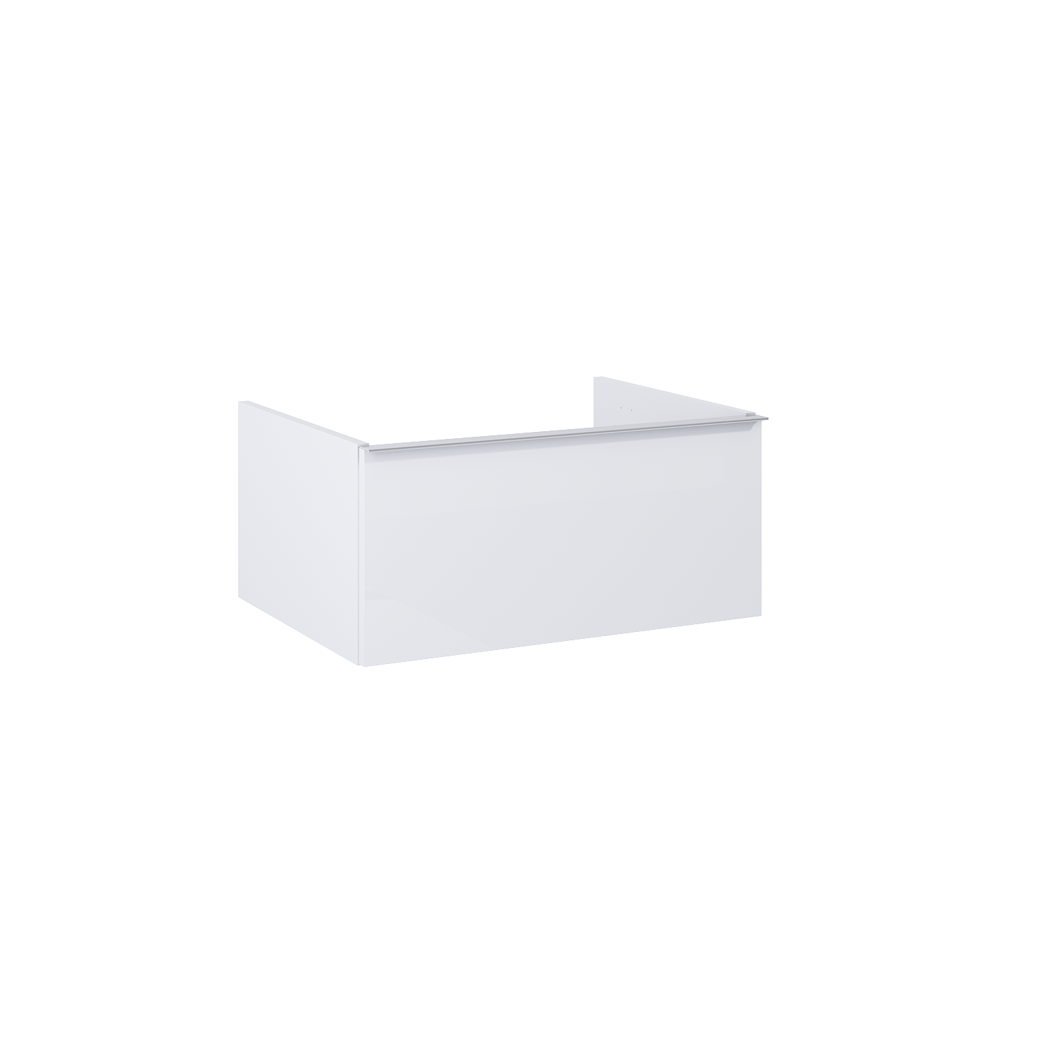 Komoda Look w kolorze White Matt posiada jedną dużą szufladę zaopatrzoną w funkcję cichego samodomyku oraz z pełnym wysuwem. Front i korpus są z płyty laminowanej, a chromowane uchwyty z metalu. Produkt przygotowany do łączenia z blatem. Uchwyty w kolorze czarnym i złotym sprzedawane są oddzielnie. Produkt posiada 2-letnią gwarancję.