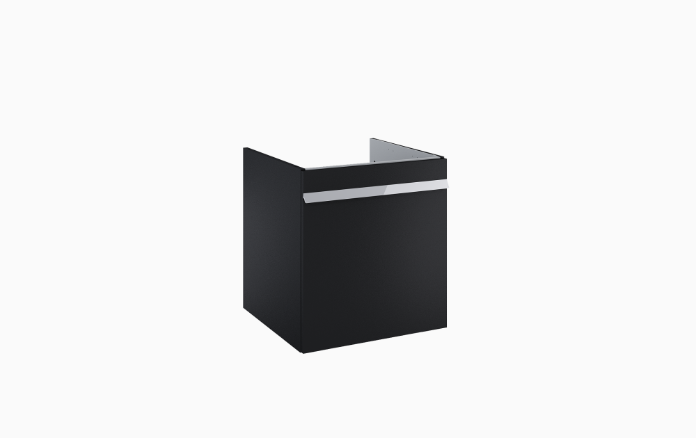 Komoda Moody w kolorze czarny mat zaopatrzona jest w jedną szufladę. Posiada ona metalowe boki, funkcję cichego samodomyku oraz pełny wysuw. Fronty i korpus wykonane są z płyty laminowanej, a uchwyty są metalowe w kolorze chrom. Nóżki sprzedawane oddzielnie. Produkt posiada 2-letnią gwarancje.