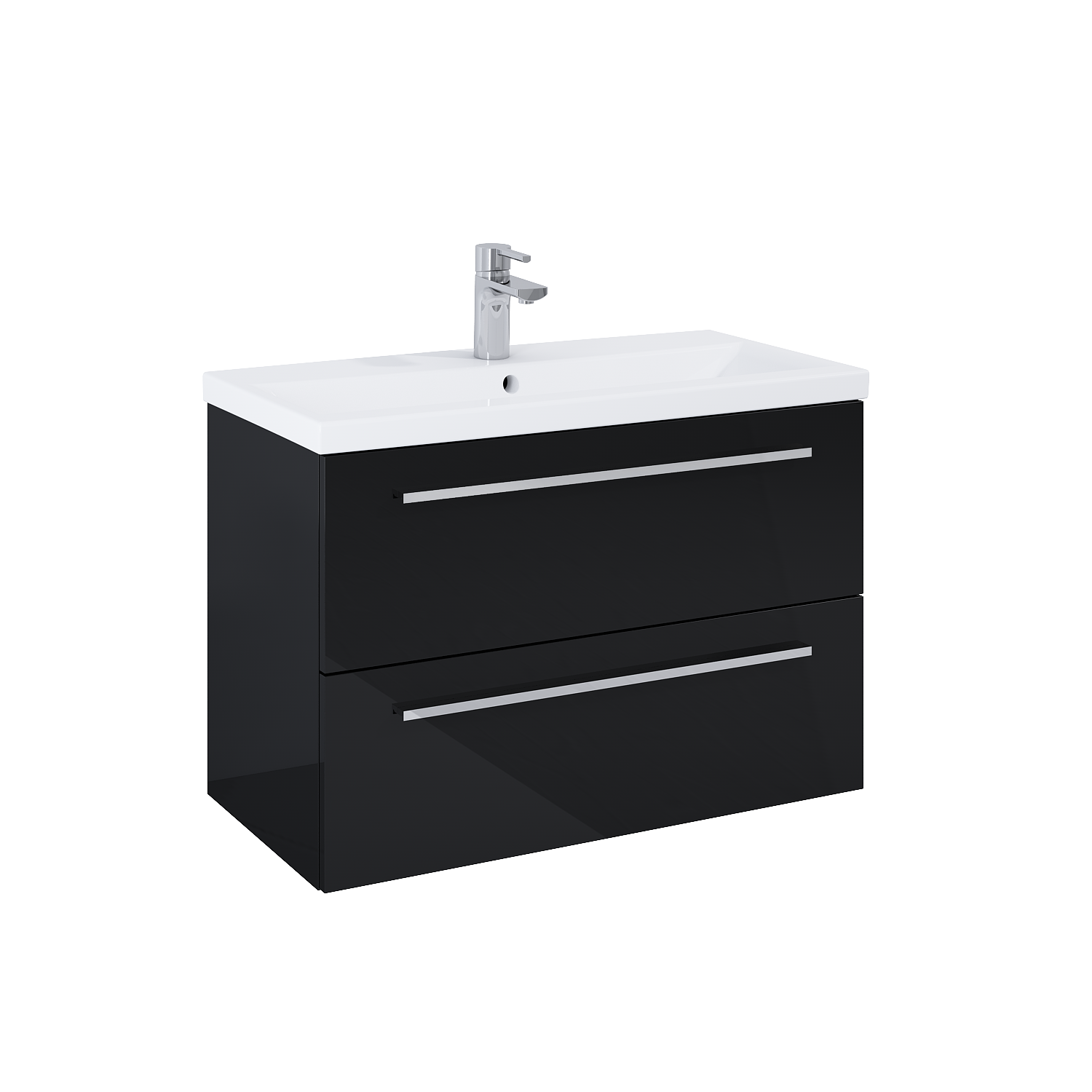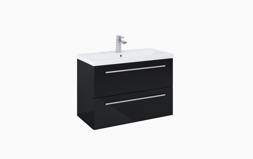 Szafka Kwadro Plus została wykonana z produktów wysokiej jakości. Posiada dwie szuflady, z funkcją cichego samodomyku oraz pełnym wysuwem, a dodatkowo w pierwszej z nich znajduje się praktyczny organizer. Front i korpus zostały wykonane z płyty laminowanej, polerowanej na wysoki połysk. Szafka posiada metalowe uchwyty w kolorze chrom. Uchwyty w kolorze białym, złotym i czarnym sprzedawane oddzielnie. Szafka może być kompletowana z umywalką meblową, bądź dzięki możliwości dopasowania blatu- może być zastosowana pod umywalkę nablatową. Produkt posiada 2-letnią gwarancję.