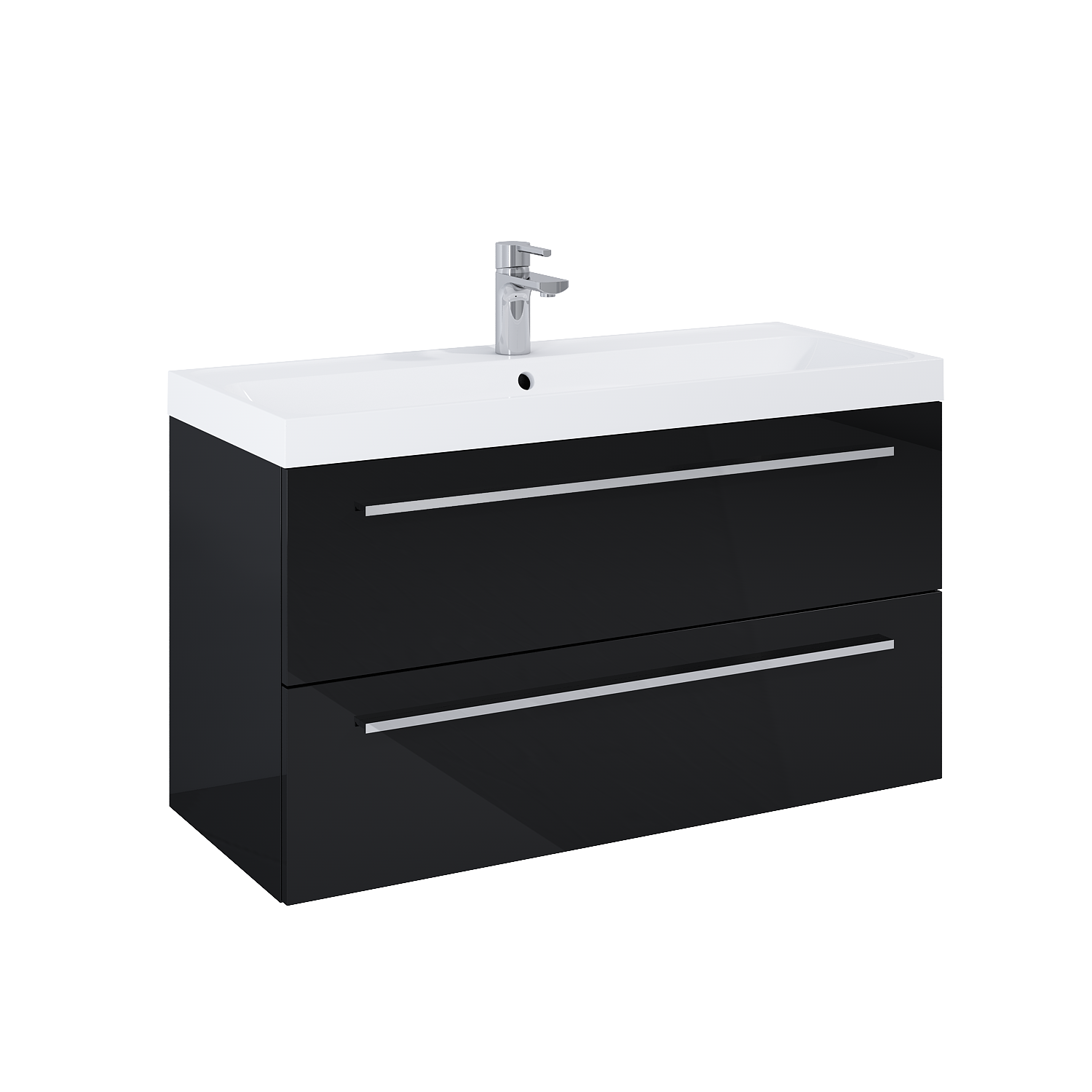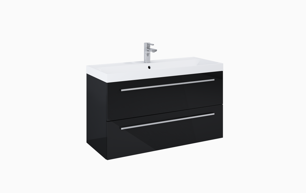 Szafka Kwadro Plus została wykonana z produktów wysokiej jakości. Posiada dwie szuflady, z funkcją cichego samodomyku oraz pełnym wysuwem, a dodatkowo w pierwszej z nich znajduje się praktyczny organizer. Front i korpus zostały wykonane z płyty laminowanej, polerowanej na wysoki połysk. Szafka posiada metalowe uchwyty w kolorze chrom. Uchwyty w kolorze białym, złotym i czarnym sprzedawane oddzielnie. Szafka może być kompletowana z umywalką meblową, bądź dzięki możliwości dopasowania blatu- może być zastosowana pod umywalkę nablatową. Produkt posiada 2-letnią gwarancję.