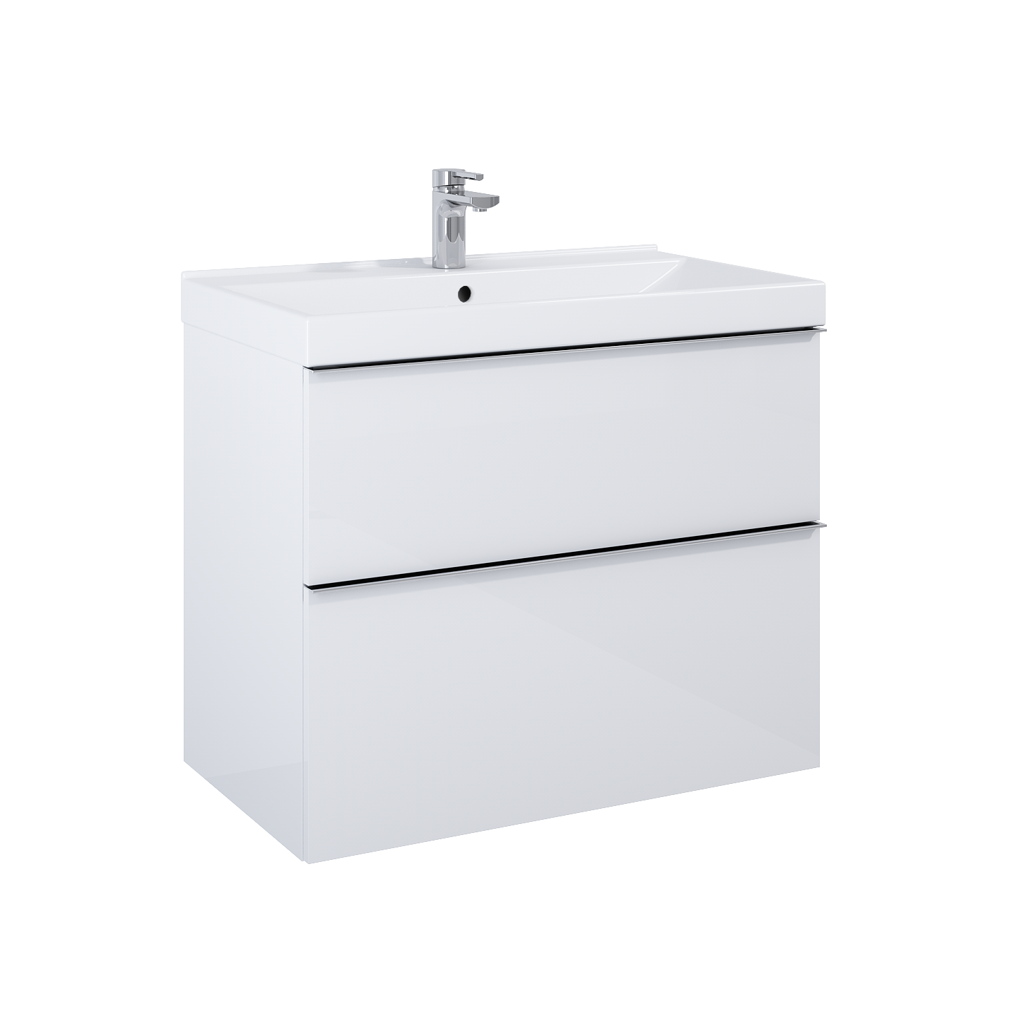 Szafka Look White Matt została wykonana z produktów wysokiej jakości. Posiada dwie szuflady, z funkcją cichego samodomyku oraz pełnym wysuwem, a dodatkowo w pierwszej z nich znajduje się praktyczny organizer. Front i korpus zostały wykonane z płyty laminowanej. Szafka posiada metalowe uchwyty w kolorze chrom. Uchwyty w kolorze czarnym i złotym sprzedawane oddzielnie. Szafka może być kompletowana z umywalką meblową, bądź dzięki możliwości dopasowania blatu- może być zastosowana pod umywalkę nablatową. Produkt posiada 2-letnią gwarancję.