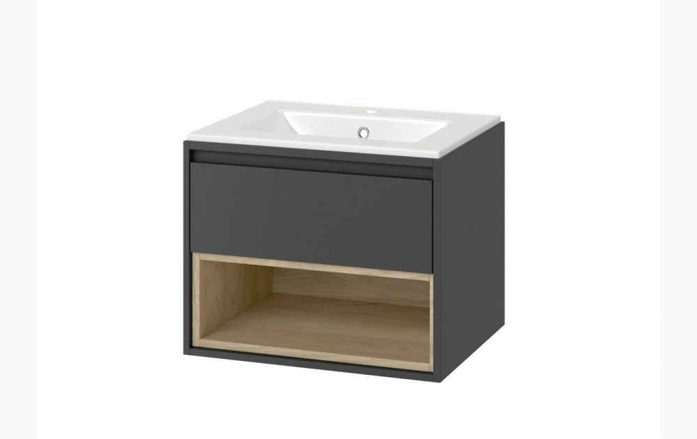 Styl, jakość oraz funkcjonalność- te trzy cechy idealnie opisują kolekcję Tuto. Szafka została wykonana z najlepszych materiałów austriackiej firmy Egger. Zastosowane zostały prowadnice BLUM, które gwarantują dożywotnią gwarancję płynnego oraz cichego domyku szuflady. Dodatkowo do wykończenia został użyty ECO lakier, który nie zawiera formaldehydów. Kolorystyka oraz kształt szafki idealnie wpasowują się w styl minimalistyczny. Prosta forma oraz szaro-dębowe fronty i korpus komponują się z łazienkami, w których dominuje szarość oraz zastosowana jest mała ilość elementów dekoracyjnych. W szufladzie znajduje się zamontowana podziałka, dzięki której utrzymanie porządku jest o wiele łatwiejsze. Meble objęte są 3 letnią gwarancją, a okucia posiadają 5 lat gwarancji. Szafka w postaci zmontowanej.