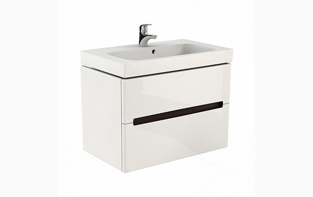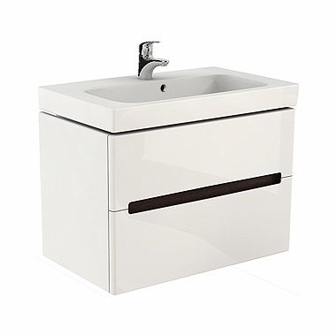 Szafka podumywalkowa wisząca Modo to kolekcja posiadająca swój niepowtarzalny, wyjątkowy styl. Jej znakiem rozpoznawczym są wycięte uchwyty, których wnętrze standardowo wykonane jest w kolorze chrom. Opcjonalnie można skompletować wnętrze uchwytu w kolorze: wenge lub jasny dąb. Biała, połyskująca powierzchnia oraz niecodzienny design szafki sprawia, że pasuje ona do łazienek w stylu nowoczesnym. Szafka posiada dwie szuflady z funkcją cichego samodomyku. Produkt posiada 2-letną gwarancję.