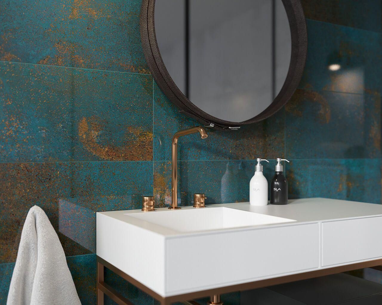 Uniwersalna szklana dekoracja Azurro to połączenie lazurowych odcieni z rdzawymi wstawkami. Zaprojektowane zostały 3 różne twarze szklanej płytki - wzór A, B i C. Mieszając trzy wzory osiągniemy bardzo ciekawy efekt końcowy, który z pewnością będzie zwracał na siebie uwagę.