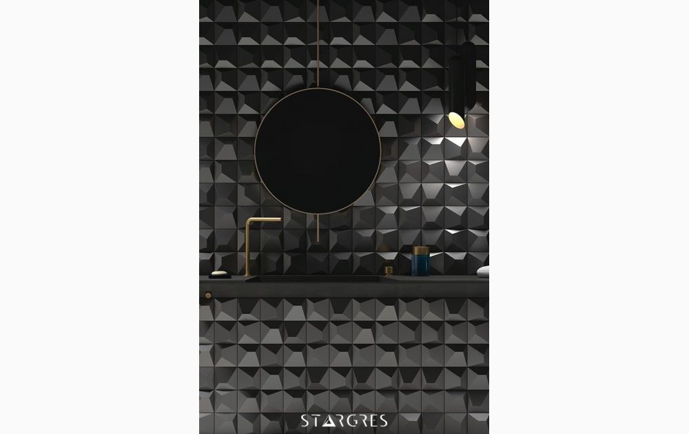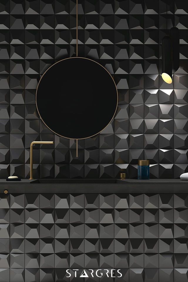 Dekoracyjna płytka 3D o geometrycznym wzorze i nowoczesnym wyglądzie. Płytka świetnie wpisuje się w aranżacje, w których dominują szarości. Płytka będzie kontrastem dla płytek imitujących beton czy kamień. Dopełnieniem aranżacji mogłaby być czarna armatura.