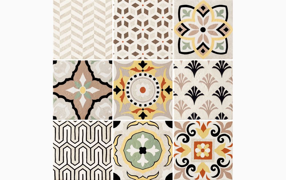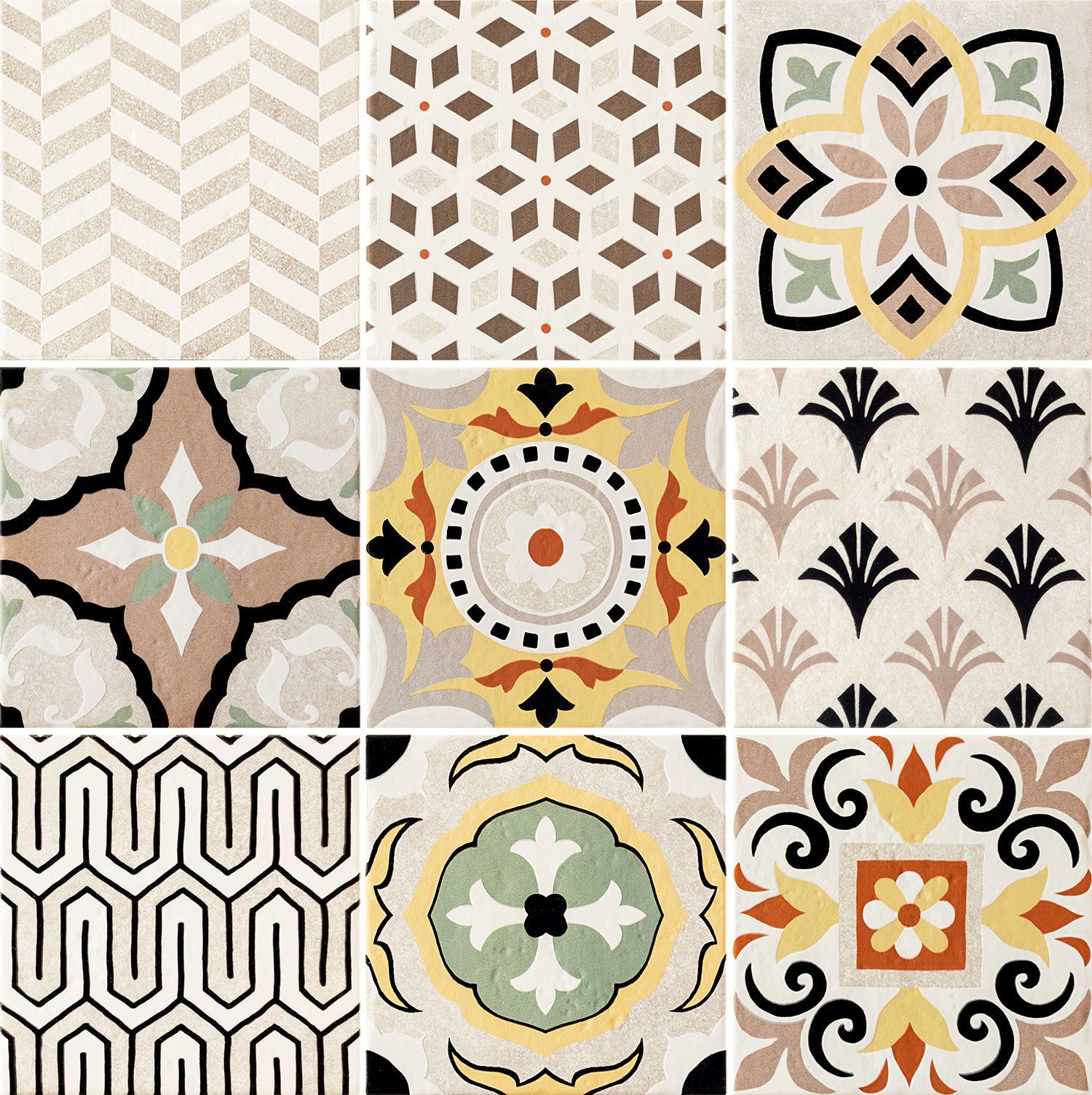 Dekor ścienny z kolekcji Prowansja od Ceramiki Domino. Dekor składa się z 8 płytek w formacie 20x20 cm utrzymanych w tej samej stylistyce. Kolorowe wzory na jasnobeżowej płytce o nierównej strukturze nadadzą wnętrzu nieprzeciętnego wyglądu.