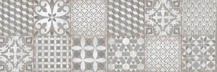 Płytka ścienna o modnym patchworkowym wzorze nadrukowanym na betonowej bazie. Płytki ścienne w kolekcji Hydra Gris występują w rozmiarze 30x90 cm w kolorze szaro-beżowym imitującym beton. Płytka pięknie komponuje się z gadką płytką Silex Gris w formacie 30x90 od tego samego Producenta.