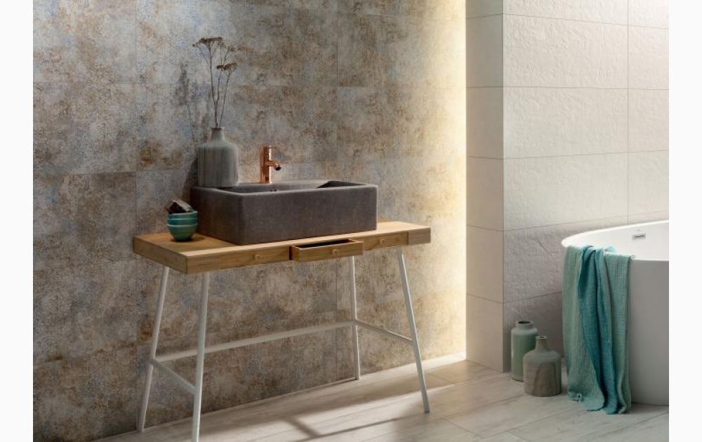 Płytka Interval Carpet to kompozycja stonowanych kolorów z przetartymi wzorami w stylu retro niczym z zabytkowych gobelinów. Płytka ścienna w formacie 33 x 90 cm. W kolekcji dostępne są także płytki ścienne w odcieniu złamanej bieli i listwy dekoracyjne. Płytkę zestawić można z płytkami gresowymi o tym samym wzorze – Persian Tale Blue, które dostępne są w formatach 59,8x59,8 cm, 59,8x119,8 cm oraz 119,8x119,8 cm.
