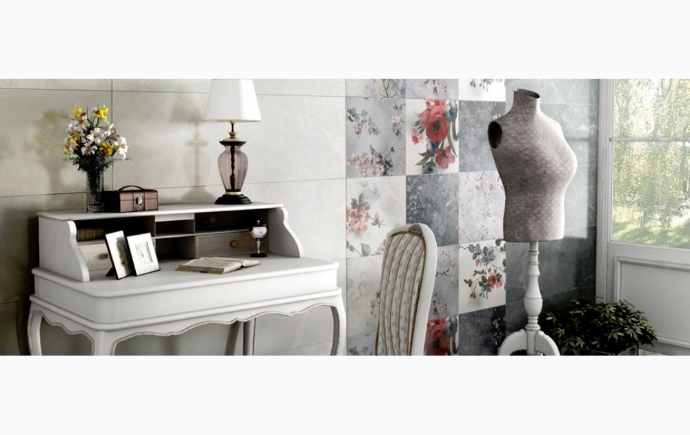 Hiszpańska płytka ścienna Pulpis Grey firmy Azteca o szarej barwie. Płytka Pulpis nada blasku przestrzeni dzięki powierzchni w połysku.