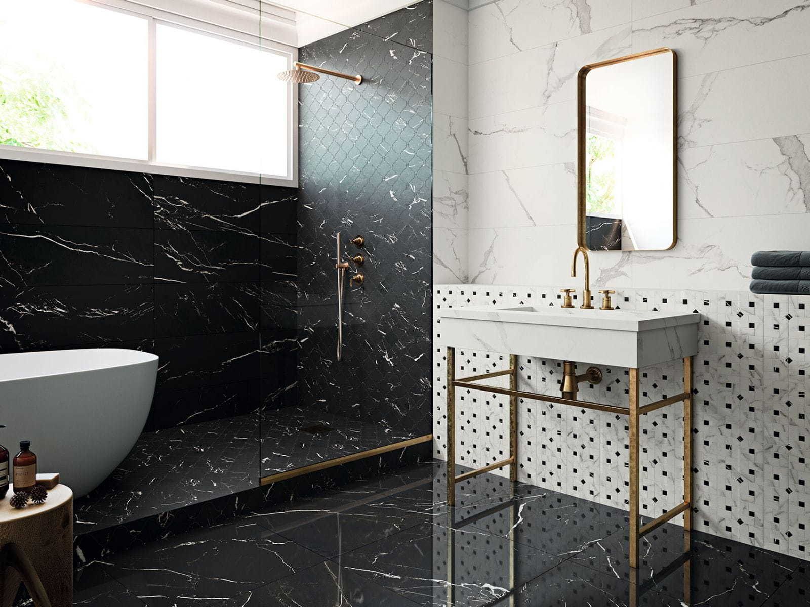 Kolekcja Marmorea to obszerny zbiór płytek imitujących różne odmiany naturalnego marmuru. Płytka Estatuario Naturale imituje biały marmur. Matowa biała powierzchnia ozdobiona szarym żyłkowaniem idealnie sprawdzi się w nowoczesnych, minimalistycznych aranżacjach. Płytkę łączyć można ze strukturalną płytką Prenaos Estatuario Relief o takim samym wyglądzie, ale o karbowanej powierzchni i czarną imitacją marmuru Marquina Naturale.