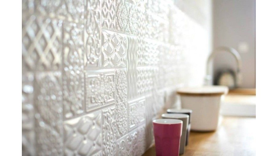 Płytka o strukturalnych wzorach na błyszczącej białej powierzchni. Dekor Raspail Blanco to połączenie klasycznych ornamentów oraz współczesnych wzorów. Kolekcja Mugat to ogrom kolorowych i wzorzystych cegiełek, przy użyciu których stworzymy oryginalne, nietuzinkowe wnętrze.