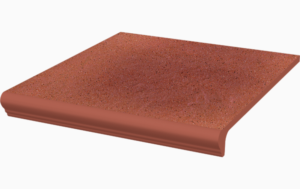 Taurus rosa 30x33 stopnica– płytka klinkierowa stopnica kampinos, w ciepłym czerwono-rudym odcieniu, idealna na schody w kolekcji są dostępne płytki na tarasy, balkony, oraz płytki elewacyjne, dzięki czemu wykończenie zewnętrze elewacji będzie spójne i eleganckie.
